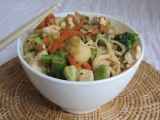 Wok de nouilles somen au poulet, à la citronnelle et ses légumes