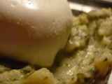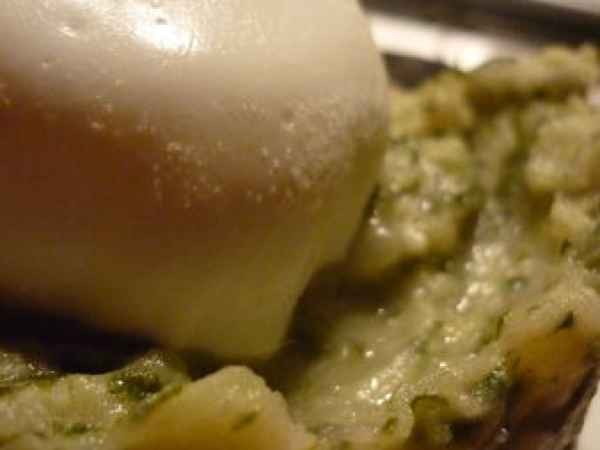 Purée bicolore épinard, pommes de terre, parmesan, et oeuf poché