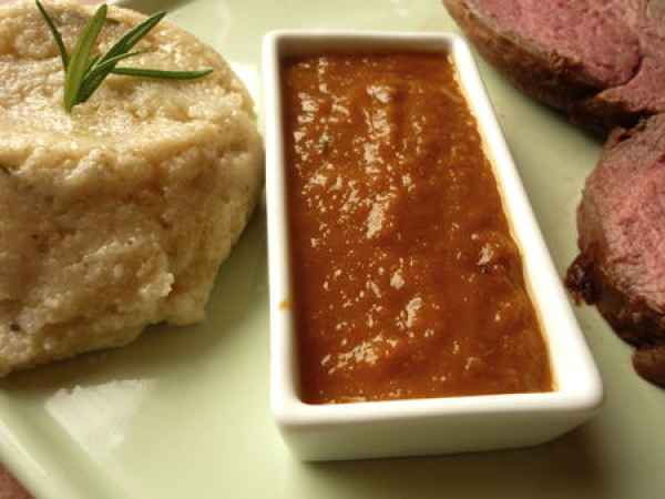 Filet de veau au romarin, gâteau de semoule de blé au romarin et parmesan