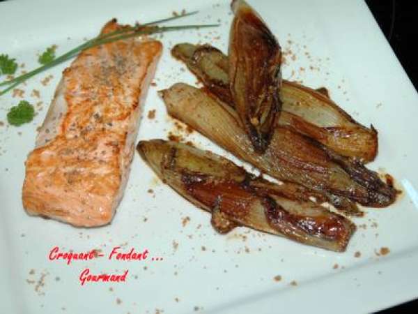 Endives à la chicorée et saumon poêlé
