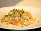 Filet de truite rôtie sur sa peau, émulsion aux herbettes