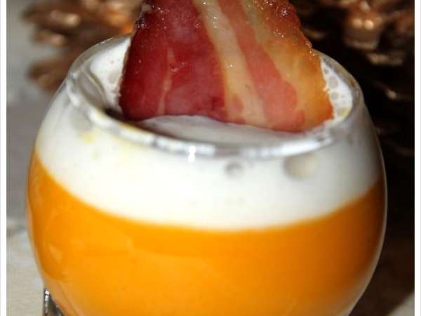 Velouté de potimarron , brunoise de châtaignes , espuma de reblochon au lard croustillant Entrée Entrée 4.4 / 5