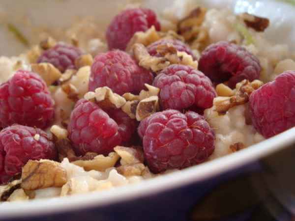 Petit déjeuner gourmand ... ou les flocons d'avoine au citron vert, framboises et noix Dessert Dessert 5 / 5
