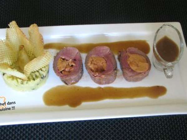 Magret d'oie rôti, fleur à l'ecrasée de pommes de terre