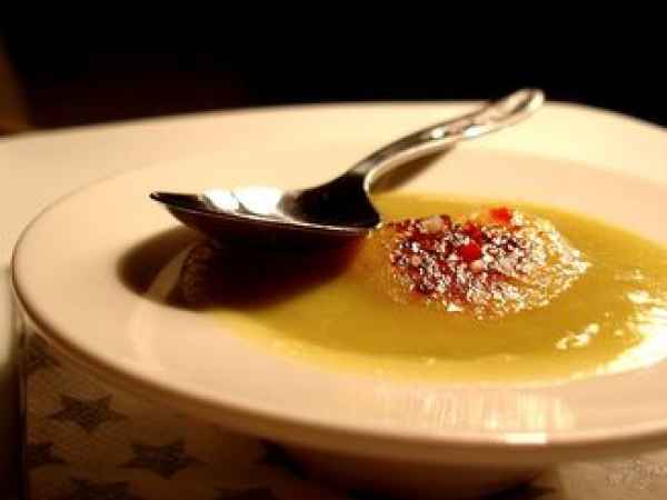 Oeufs soufflés au parmesan, chantilly de truffe.