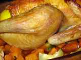 Poulet rôti sur lit de légumes, d'après une recette de jamie oliver