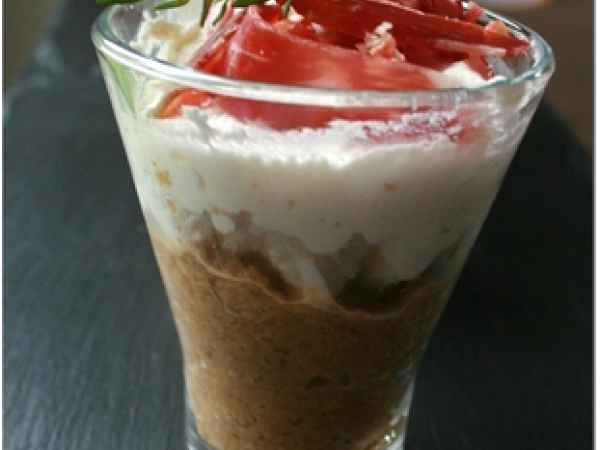 Verrines au caviar d'aubergines, ricotta & jambon pata negra