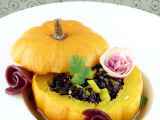Courge jack be little, riz noir vénéré, carottejaune et magret de canard
