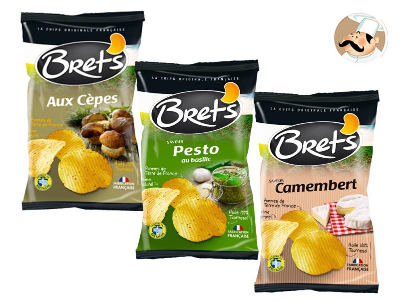 * La chips aux cèpes : pour faire honneur au champignon préféré des Français. Un arôme 100% naturel se mariant à merveille avec les craquantes chips de pommes de terre Bret's.