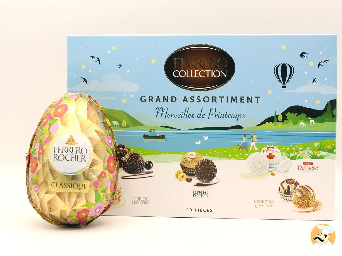 La gamme Ferrero Collection s’invite également à Pâques avec des coffrets aux motifs printaniers qui réunissent plusieurs recettes emblématiques comme Ferrero Rocher, Raffaello ou Rondnoir.