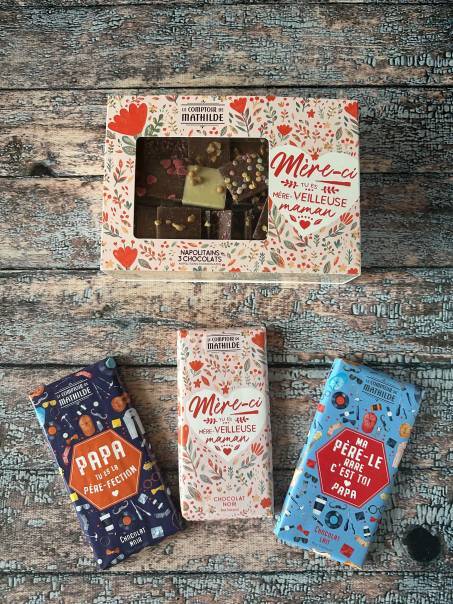 Pour la fête des mères et la fête des pères, la célèbre épicerie fine spécialisée dans le chocolat met les petits plats dans les grands avec des tablettes de chocolat spécialement élaborées pour l'occasion :-)