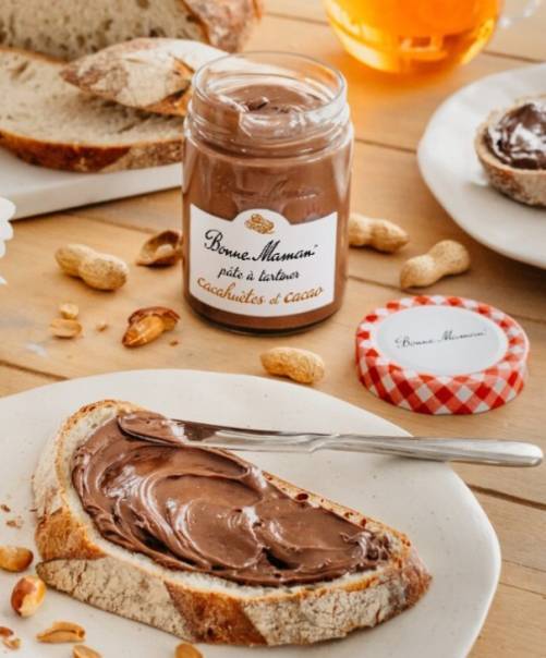 « C’est une réelle invitation au plaisir gustatif », déclare Bonne Maman. Composée de 40% de cacahuètes, cette recette est le fruit d'un mariage savant entre des ingrédients de qualité, sans huile de palme, et révèle un équilibre subtil entre générosité en cacahuètes et douceur chocolatée.