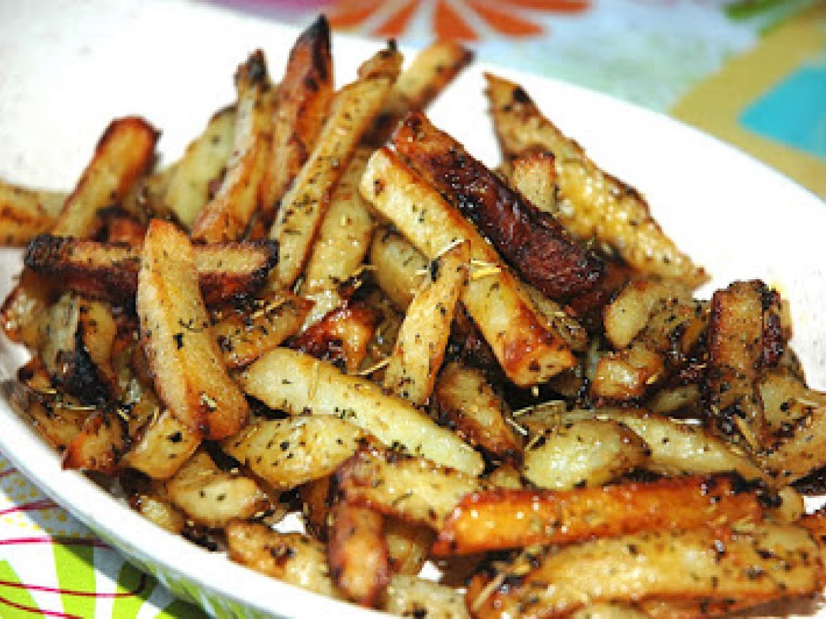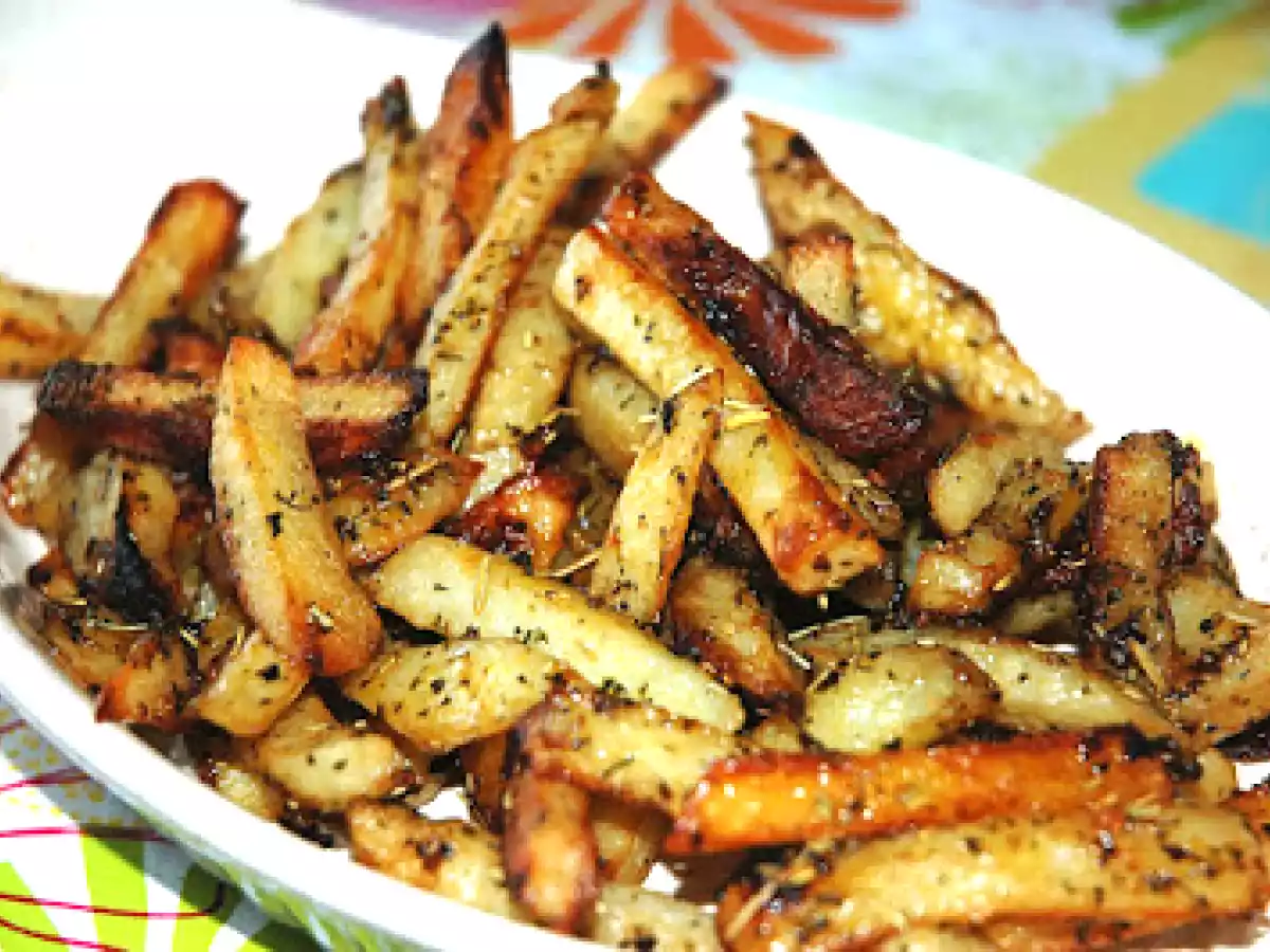 Frites aux fines herbes cuites au four Accompagnementfacile52 min357 Kcal Envoyer cette recette à un ami Imprimer cette page Poser une question à l'auteur Publier votre photo de cette recette Ingrédients 4 6 grosses pommes de terre Idaho pelées et coupées en grosses frites ¼ tasse d'huile d'olive 4 gousses d'ail hachées finement 2 cuillères à thé de romarin séché 2 cuillères à thé de thym séché 2 cuillères à thé de sel de céleri Sel poivre au goût Coût estimé: 3.74Euros€ (0.94€/part)