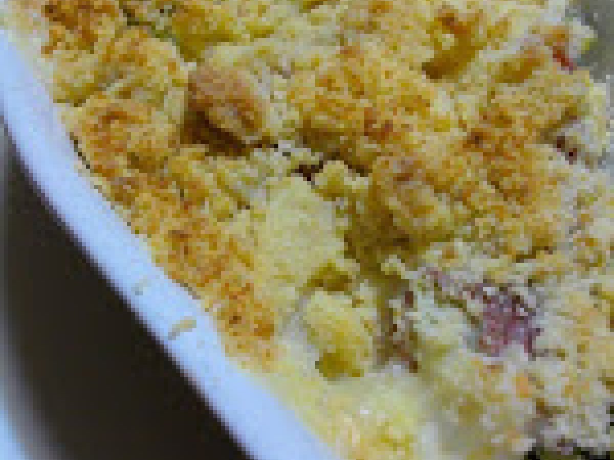 Gratin au deux choux et fromage à raclette votez maintenant PrécédentSuivant Accompagnementfacile30 min Envoyer cette recette à un ami Imprimer cette page Poser une question à l'auteur Publier votre photo de cette recette Ingrédients 2 2 pommes de terre moyenne un peu de chou fleur et un peu de brocolis 4 tranches de bacon 10 cl de crème fraîche liquide 4 tranches de fromage à raclette poivre Pour le crumble : 30 g de farine 30 g de beurre 25 g de chapelure 1 pincée de poivre