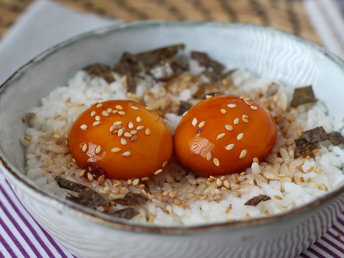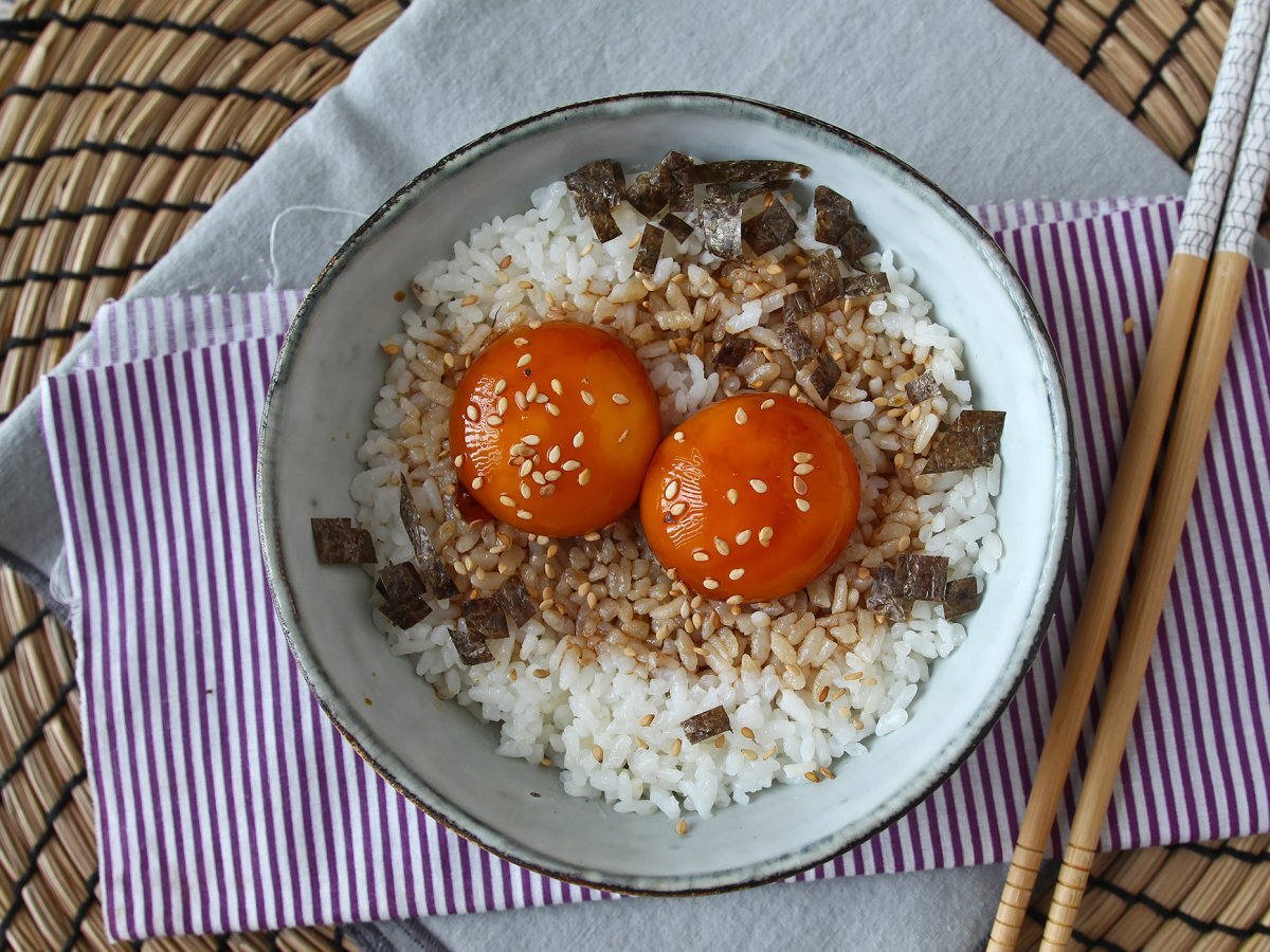 On pose ses valises au Japon pour une bonne dose d’umami avec les jaunes d'œuf confits dans la sauce soja ! Pas besoin de cuisson, juste un peu de patience : on les laisse reposer au frigo, et ils deviennent fondants à souhait, hyper parfumés. Ensuite, à vous de jouer : glissés dans un onigiri, déposés sur un donburi avec du riz à sushi, des graines de sésame et du nori émietté… un pur régal ! Et si vous êtes du genre pressé, testez notre version au Airfryer, plus rapide mais tout aussi savoureuse !