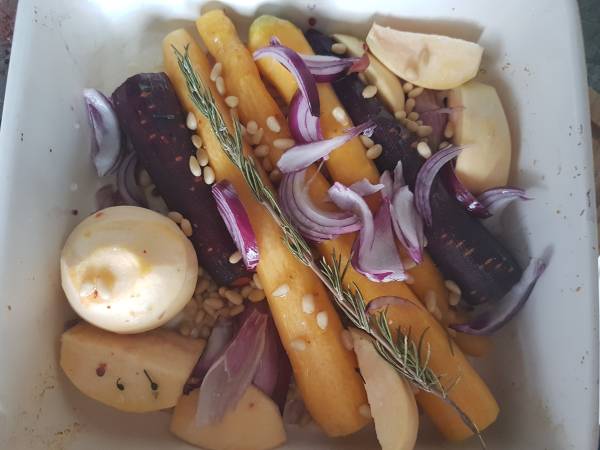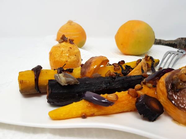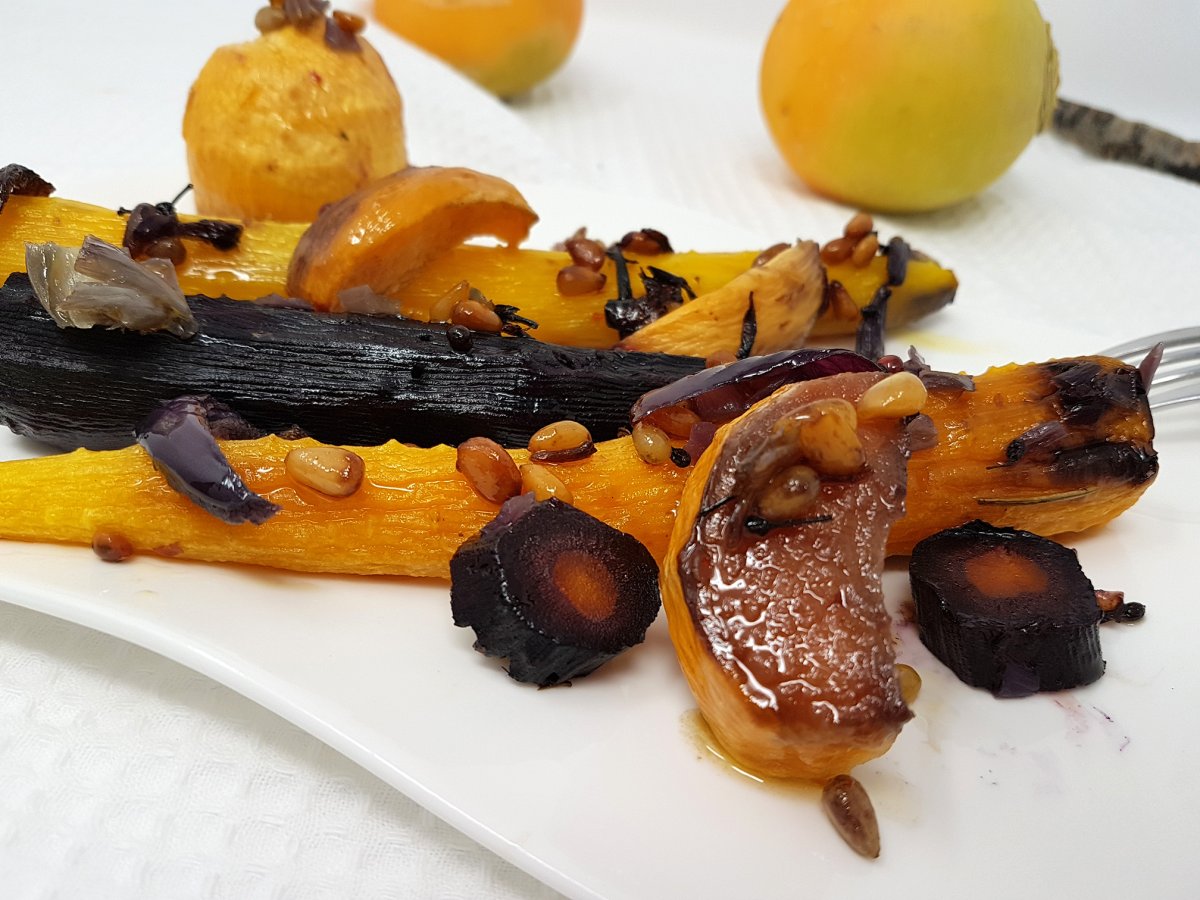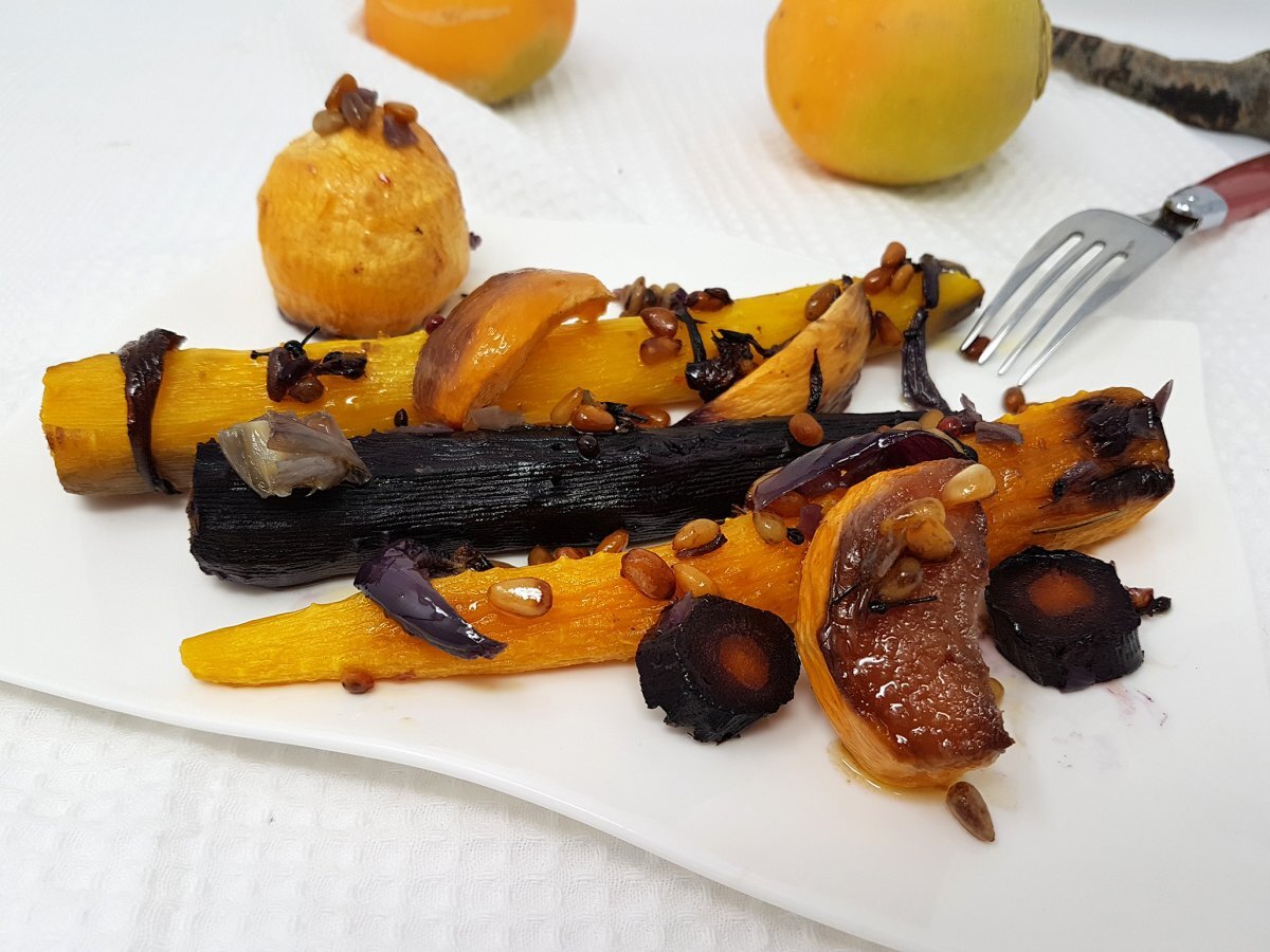 Un repas sain et gourmand, avec des carottes et navets fondants et des pignons croquants