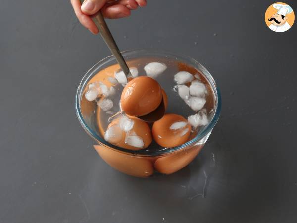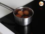 Faire cuire les œufs (à température ambiante) dans de l'eau bouillante pendant 6 minutes et 30 secondes.