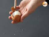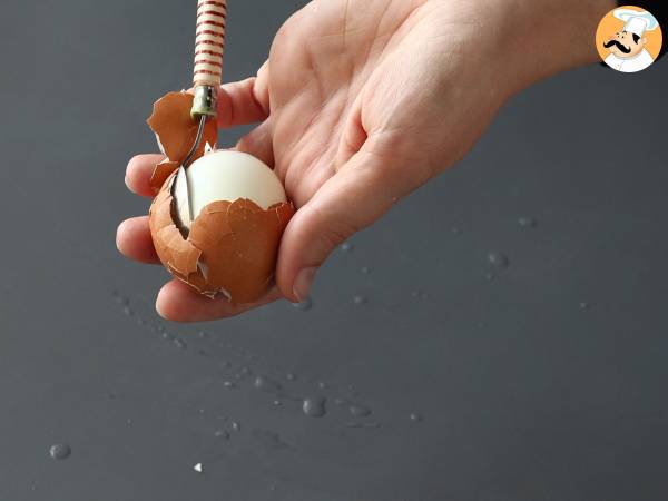 *Avec une cuillère à café, tapez sur l'œuf. Puis passez la cuillère sous la coquille et faites le tour de l'œuf pour retirer la coquille délicatement.