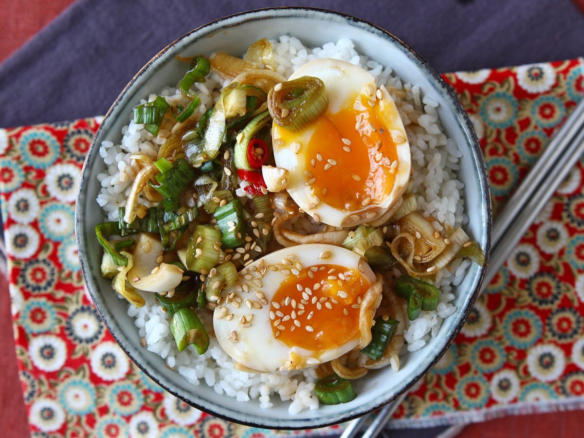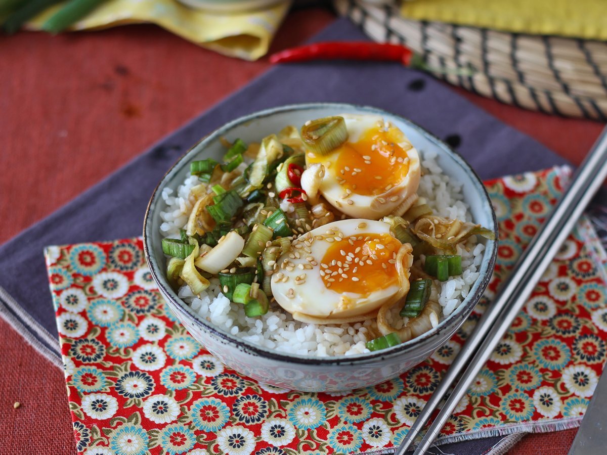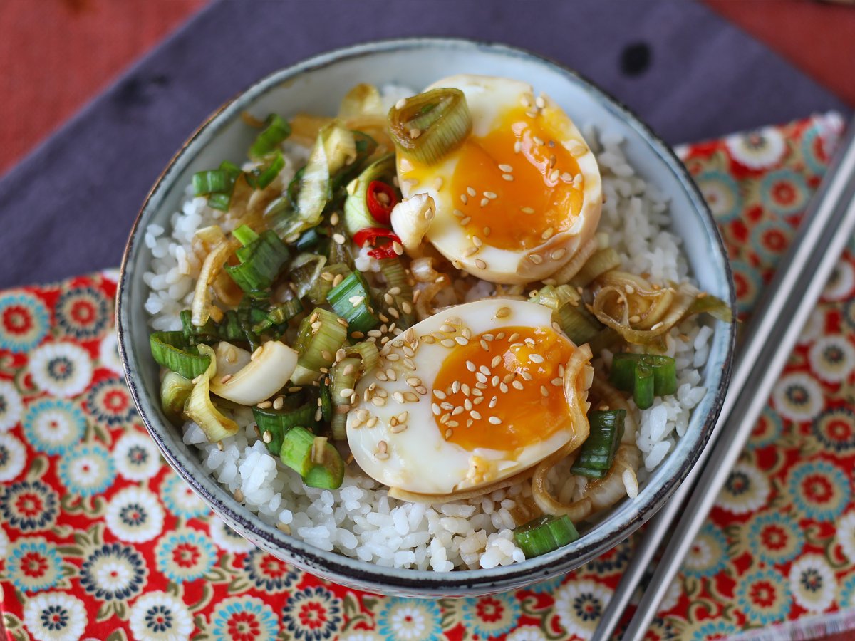 Vous pourrez les déguster avec du riz à sushi. Ajouter les œufs coupés en deux sur votre bol de riz, arrosez de sauce et des ingrédients de la marinade et régalez-vous!