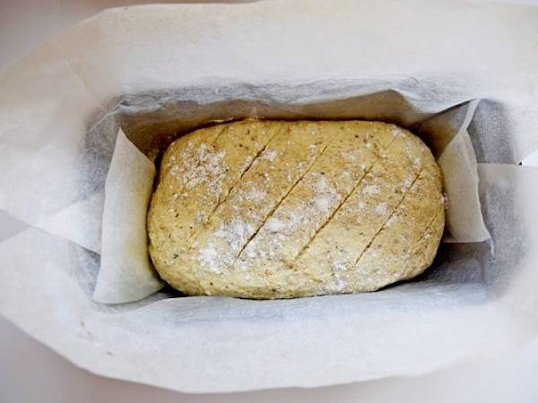 Pain au pesto à l'ail des ours, à l'huile d'olive et linette