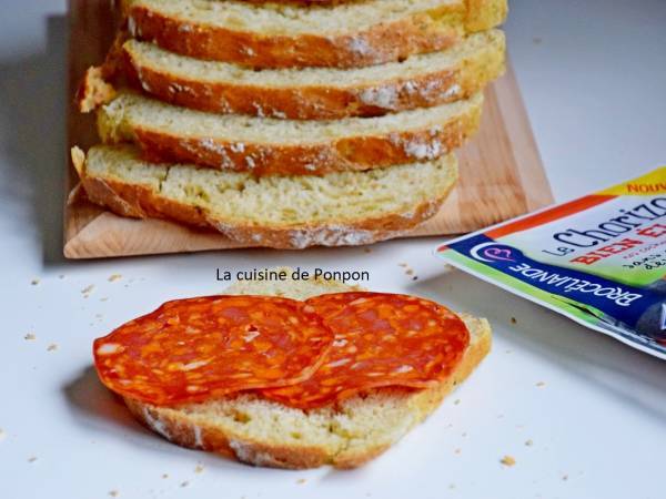 A la maison, on ne mange que du "pain maison" et j'utilise toujours de la bonne huile d'olive, jamais de beurre. Le pesto est fait à base d'huile, alors pourquoi ne pas l'utiliser dans un pain? Résultat tout à fait concluant pour les tartines du repas de midi de mon mari!