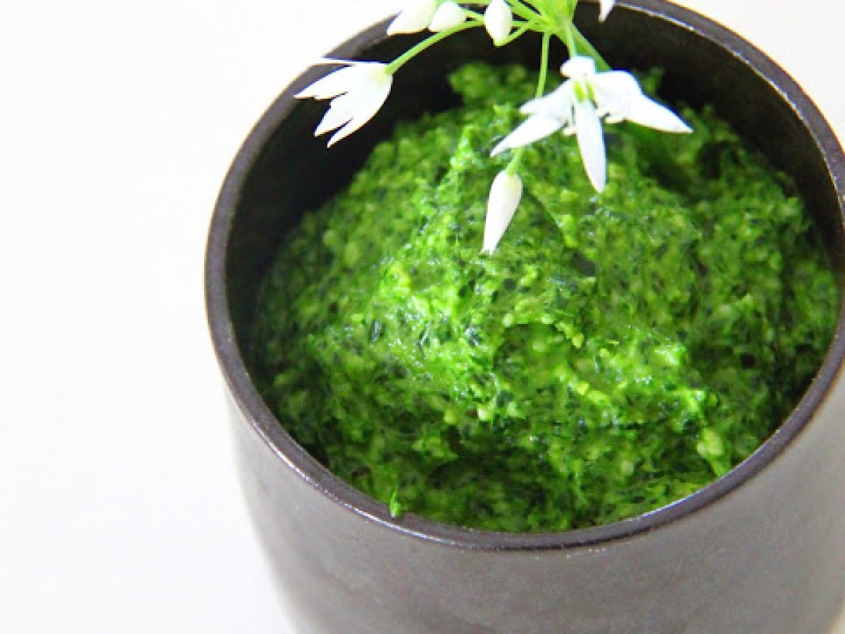 Pesto à l'ail des ours... Accompagnementfacile5 min761 Kcal Envoyer cette recette à un ami Imprimer cette page Poser une question à l'auteur Publier votre photo de cette recette Ingrédients 1 100 g d'ail des ours 40 g de pignons de pain ou d'amandes 60 g de pecorino ou de parmesan 1 dl d'huile d'olive poivre sel Coût estimé: 5.07Euros€ (5.07€/part)