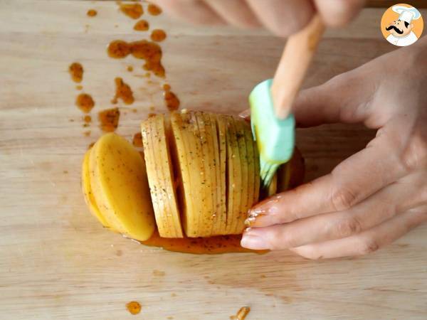Badigeonnez chaque pomme de terre du mélange fait précédemment, en l'appliquant délicatement entre chaque lamelle.