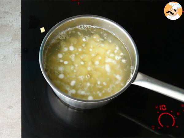 Pelez et coupez les pommes de terre en morceaux, et faites les cuire dans l'eau bouillante pendant environ 10 minutes.