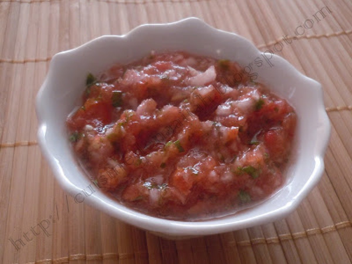 Rougail tomates Accompagnementfacile12 min34 Kcal Envoyer cette recette à un ami Imprimer cette page Poser une question à l'auteur Publier votre photo de cette recette Ingrédients 4 2 grosses tomates 1 oignon 1/2 cuillère à café de gingembre râpé une pointe de piment vert haché une poignée de feuilles de coriandre fraîche du sel Coût estimé: 3.51Euros€ (0.88€/part)