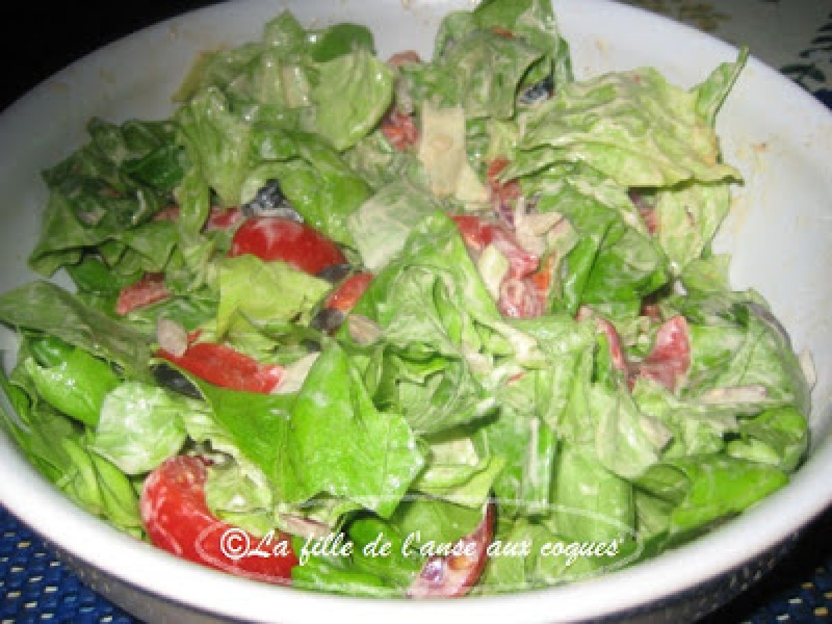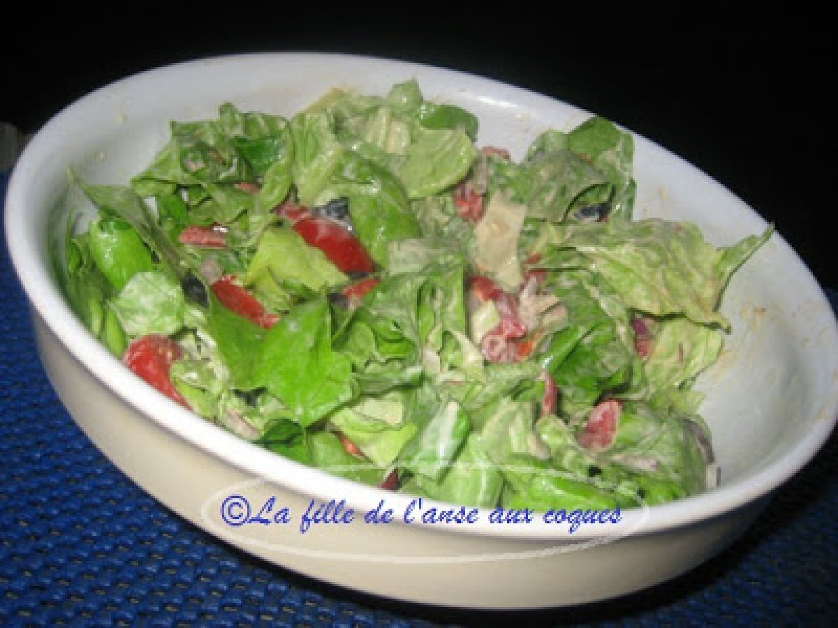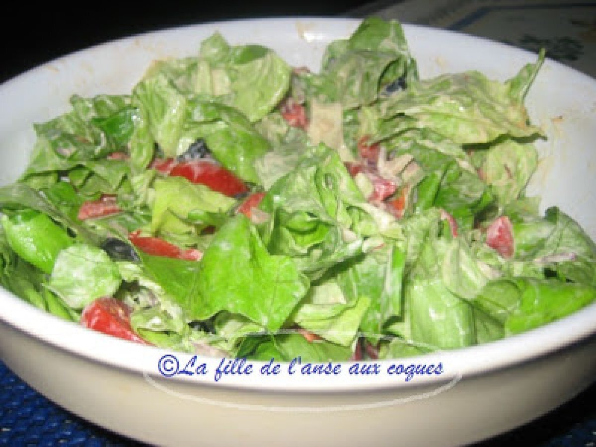 Salade de laitue boston, tomates et poivrons rôtis PrécédentSuivant Accompagnementfacile5 min Envoyer cette recette à un ami Imprimer cette page Poser une question à l'auteur Publier votre photo de cette recette Ingrédients 4 1 laitue Boston 1 tomate épépinée et hachée 1 poivron rouge rôti en lanières 5 olives noires en rondelles ¼ tasse (60 ml) d?oignon rouge haché finement 1 cuillère à soupe (15 ml) de mayonnaise 1 cuillère à soupe (15 ml) de yogourt nature Sel poivre du moulin