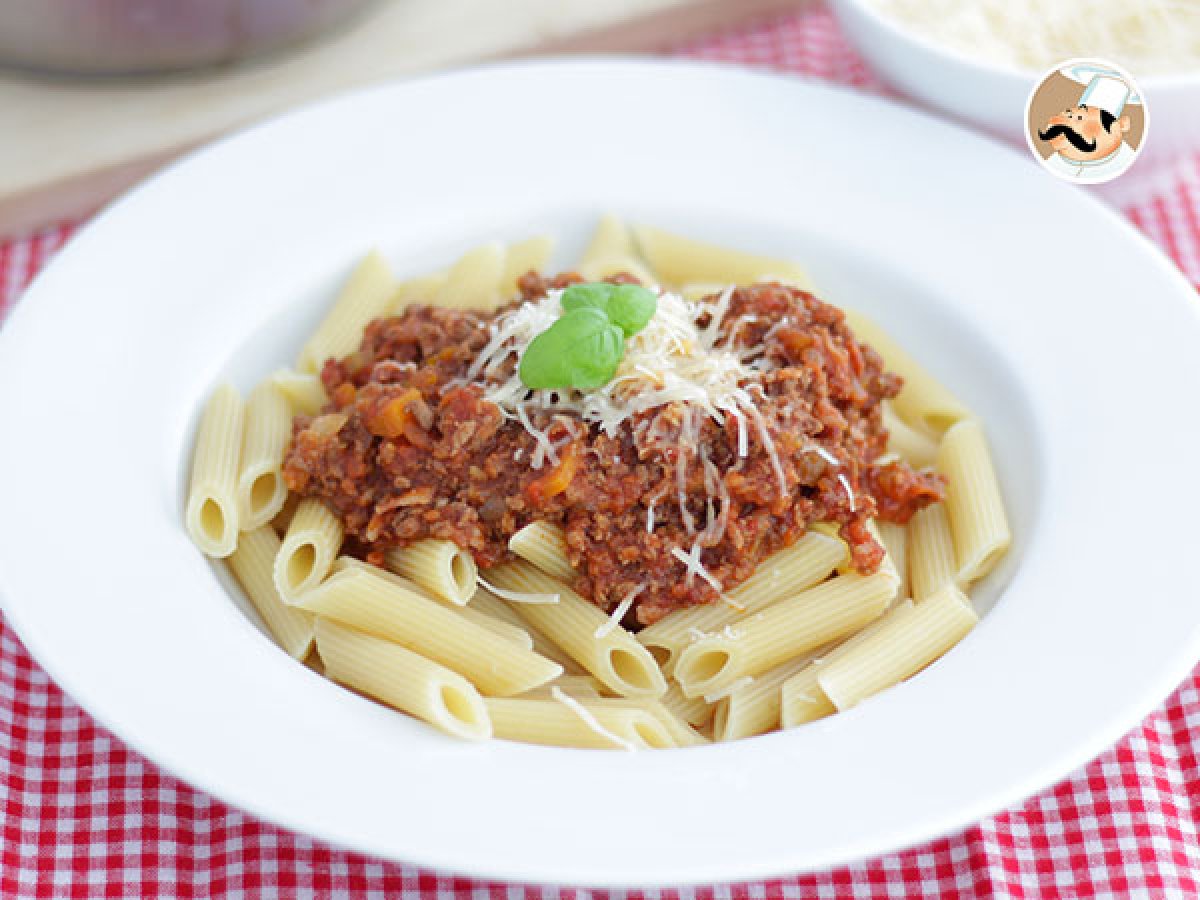 Servir avec des pâtes al dente, et un peu de parmesan râpé. Et voilà, votre sauce bolognaise est prête !