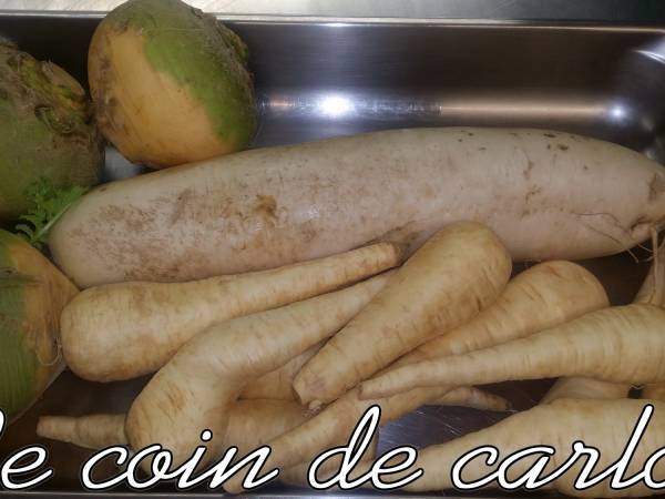 Ajouter les 3, panais, navets et rutabagas dans une seule bac gastro.