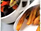 Ingrédients: Moules au poivron et au safran : 2 litres de moules nettoyées (en barquette en grande surface) 1/2 poivron rouge 2 oignons nouveaux 1/2 botte de...