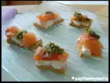 Ingrédients: Quelques biscuits salés au sésame de la biscuiterie Billiote De petits dés de saumon fumé Quelques cuillère à café de Saint Moret Quelques...