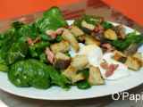 Ingrédients: 500 g de jeunes pousses d'épinard 4 tranches de pain BIO 1 citron 4 oeufs 100 g de lardons 3 cuillères à soupe d'huile de tournesol du poivre