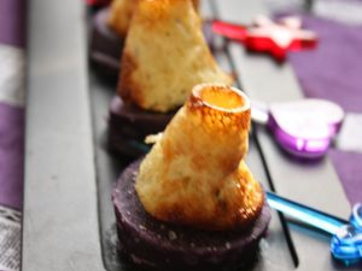 Amuse bouche coloré:duo de petites quiches et de pomme de terre vitelotte PrécédentSuivant Apéritiffacile30 min Envoyer cette recette à un ami Imprimer cette page Poser une question à l'auteur Publier votre photo de cette recette Ingrédients 4 3 oeufs un petit pot de crème fraîche 75 g de fromage râpé une grosse boite de crabe du sel pas trop du poivre un peu de safran ou de curry 2 pommes de terre vitelotte