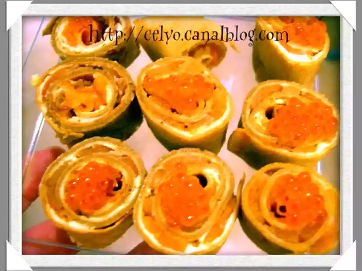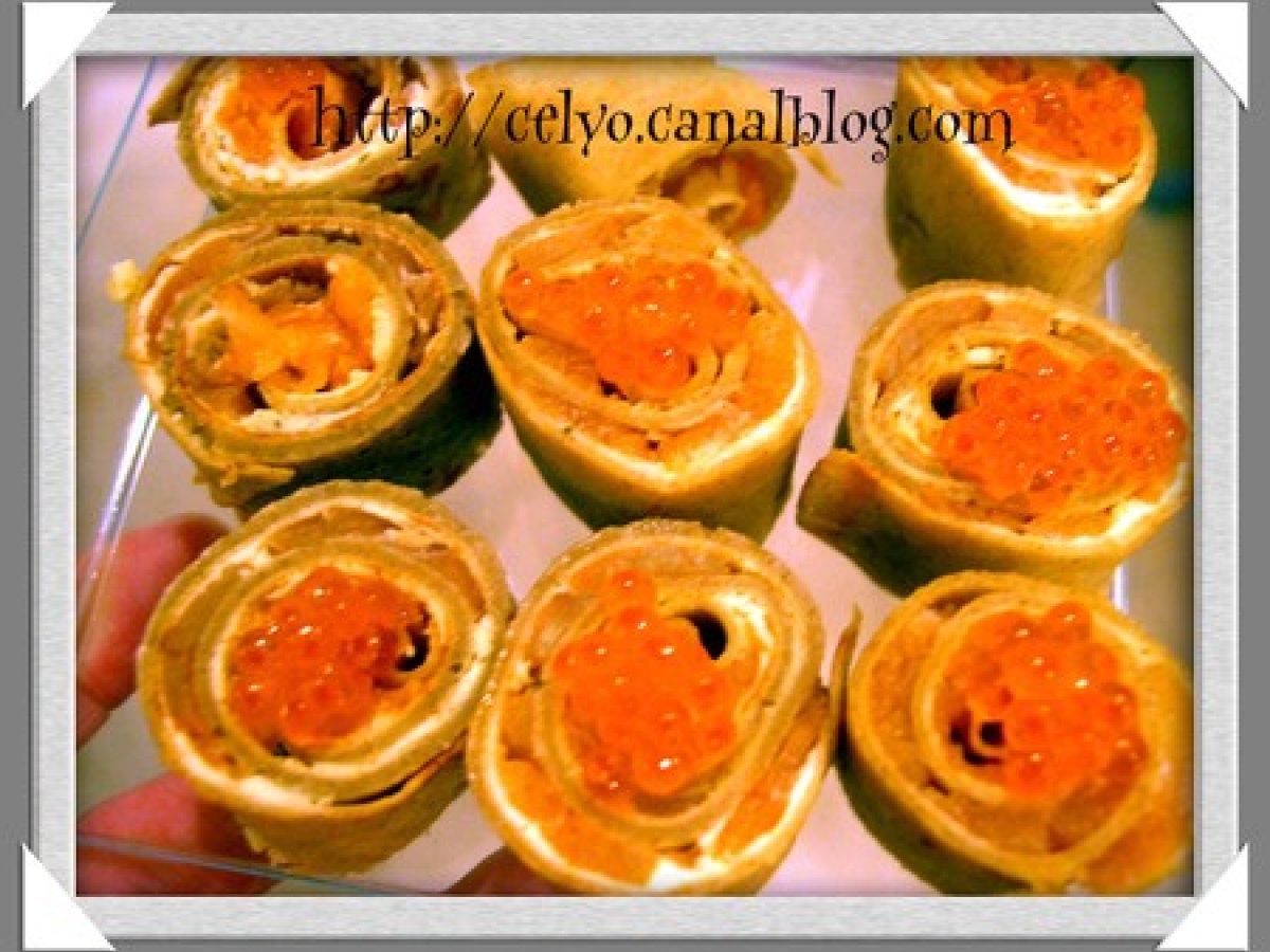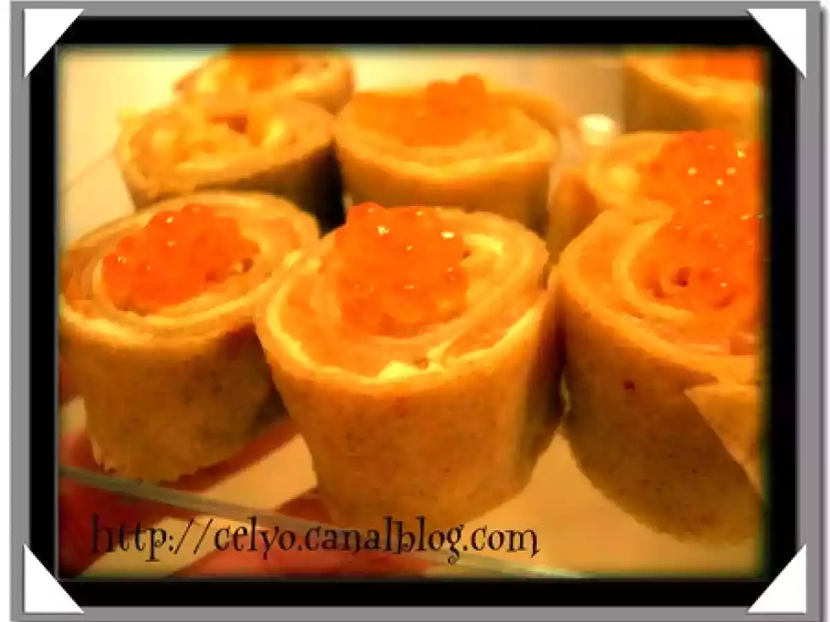 Apéritif dinatoire du réveillon - crêpes de sarrasin roulés au saumon fumé