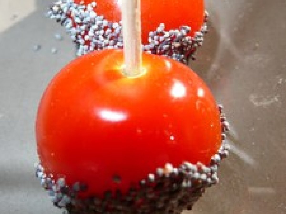 Faire un sirop avec l'eau et le sucre. Rincez les tomates cerises et piquez les au bout d'un cure dent. - Trempez la moitié supérieure de la tomate dans le sirop en la tenant par la pique à dent, puis roulez cette partie dans le pavot.