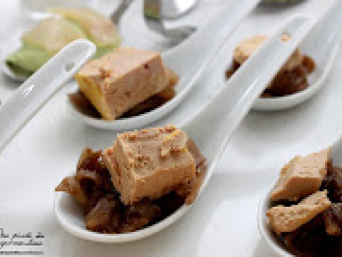 Apéro gourmand : cuillères au foie gras et oignons confits au vinaigre balsamique PrécédentSuivant Apéritiffacile1 h 10 m493 Kcal Envoyer cette recette à un ami Imprimer cette page Poser une question à l'auteur Publier votre photo de cette recette Ingrédients 6 1 kg d'oignons de la couleur de votre choix 30 g de beurre 4 cuillères à soupe de sucre 10 cl de vinaigre balsamique Sel et poivre Un bloc de foie gras Coût estimé: 22.6Euros€ (3.77€/part)
