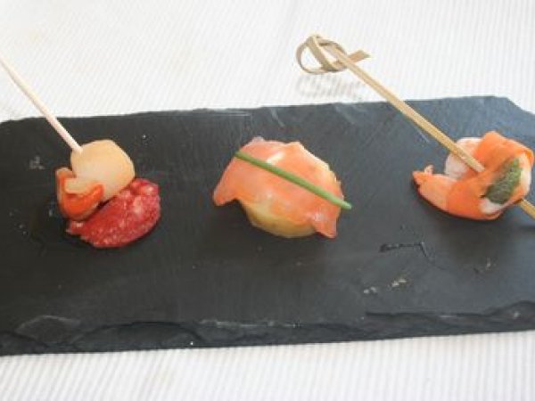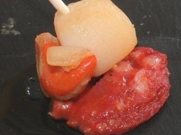 Assembler une noix et une rondelle de chorizo avec un cure-dent .- 2) Sushi de ratte :