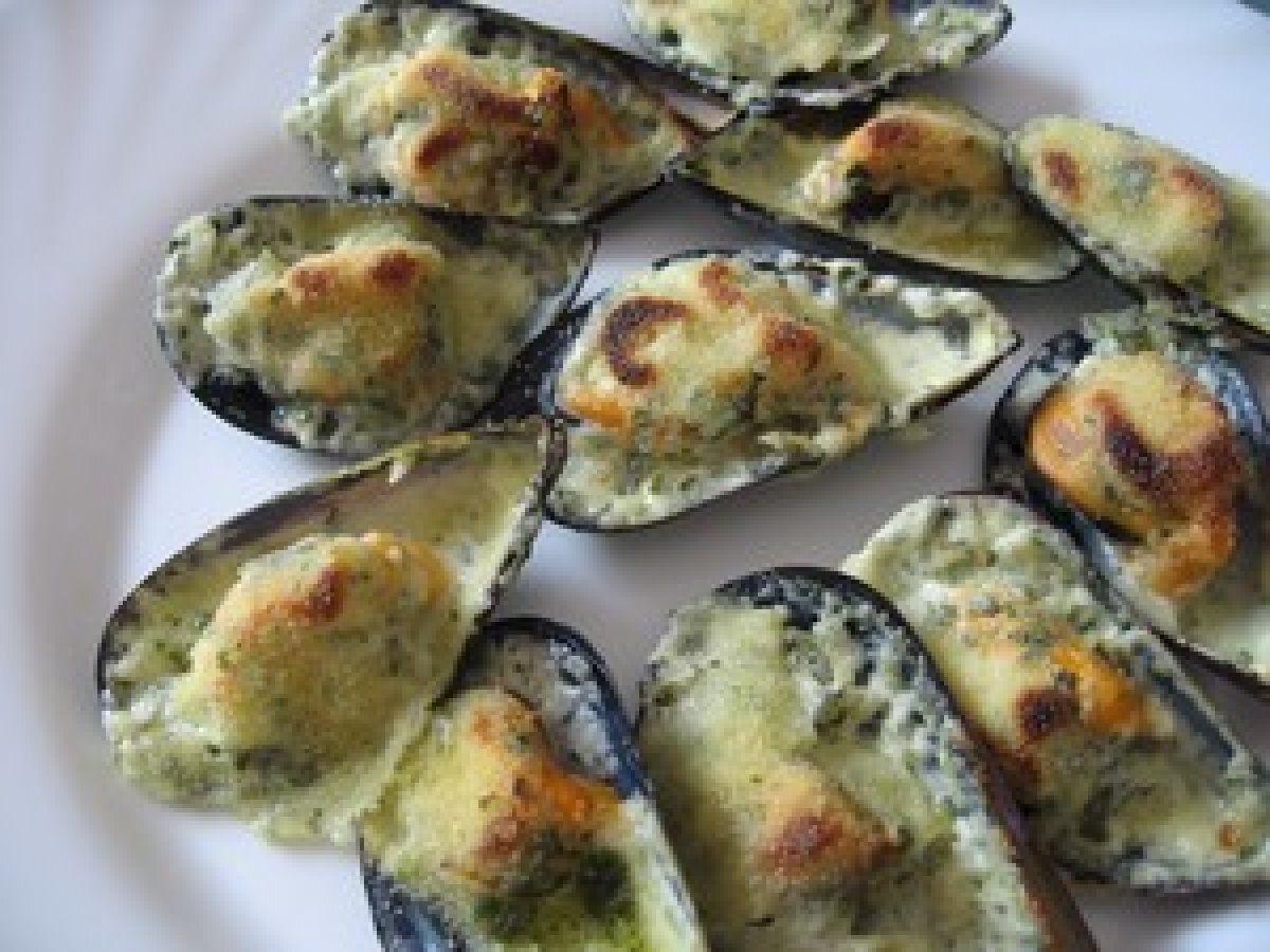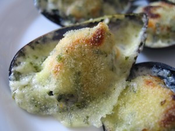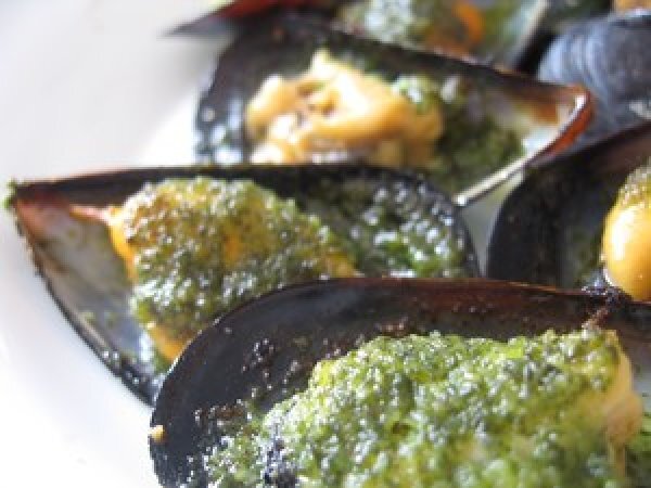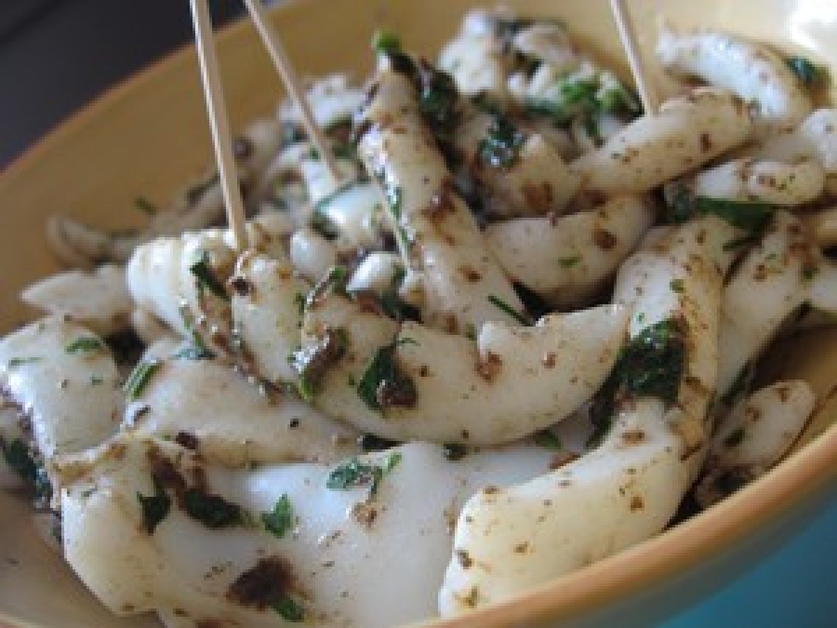 Blancs de seiche à la tapenade et moules au beurre d'ail