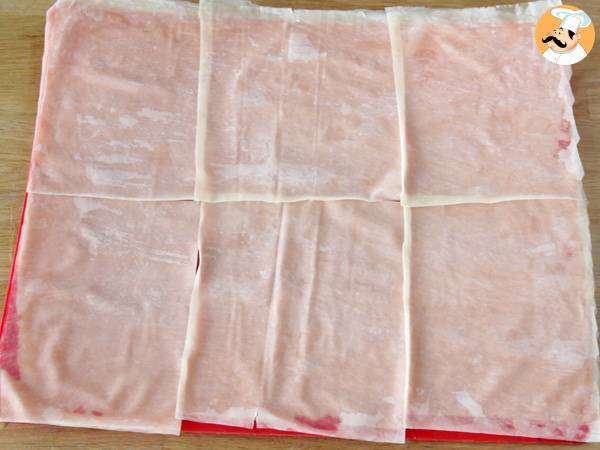 Coupez les feuilles en 6 et placez les carrés sous un torchon humide pour éviter qu'elles sèchent.