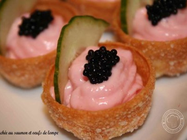 Bouchees au saumon et oeufs de lompe PrécédentSuivant Apéritiffacile15 min Envoyer cette recette à un ami Imprimer cette page Poser une question à l'auteur Publier votre photo de cette recette Ingrédients 4 des croustades un pot de tarama 3 cuillères à soupe de fromage blanc Un trait de jus de citron Un pot d'oeufs de lompe Un concombre