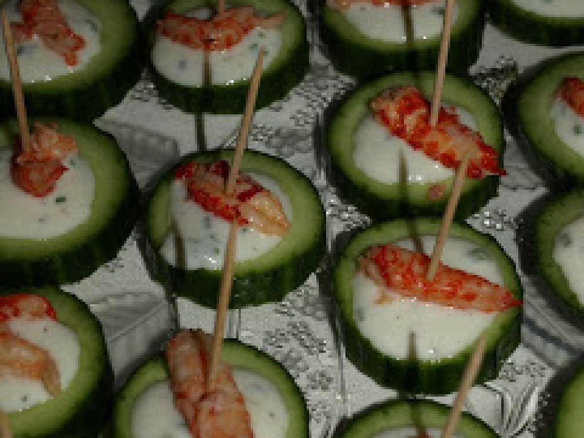 Bouchées de concombre aux queues d'écrevisses
