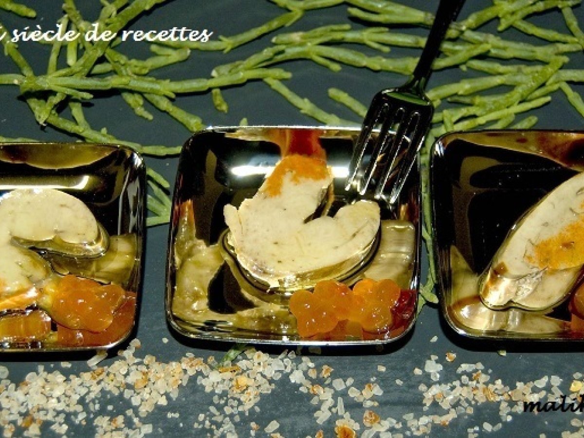Bouchées de foie gras de la mer Apéritifmoyen24 h 10 m Envoyer cette recette à un ami Imprimer cette page Poser une question à l'auteur Publier votre photo de cette recette Ingrédients 6 1 foie de lotte paré et nettoyé 1 cube de bouillon de poisson 1 c à soupe de grains de poivres 1 c à soupe de paprika 1 c à soupe de grains de coriandre de lhuile dolive en quantité suffisante pour recouvrir le foie du sel au pili pili ou tout autre sel de votre choix