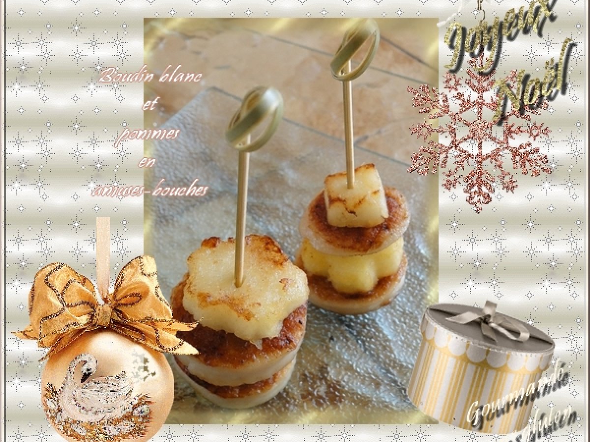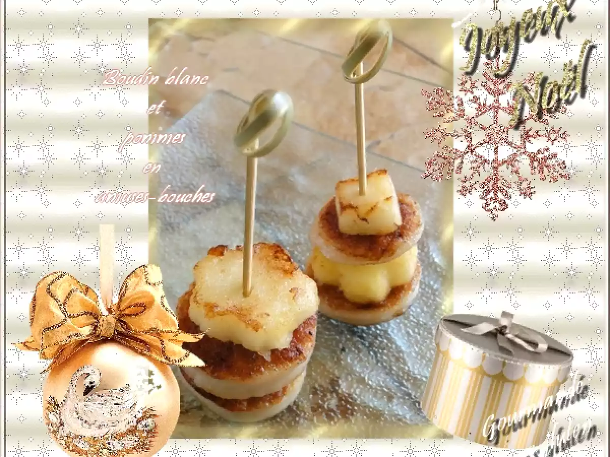 Boudin blanc et pommes en amuses bouches Apéritiffacile15 min353 Kcal Envoyer cette recette à un ami Imprimer cette page Poser une question à l'auteur Publier votre photo de cette recette Ingrédients 2 boudin blanc pommes vinaigre de Xérès huile et beurre