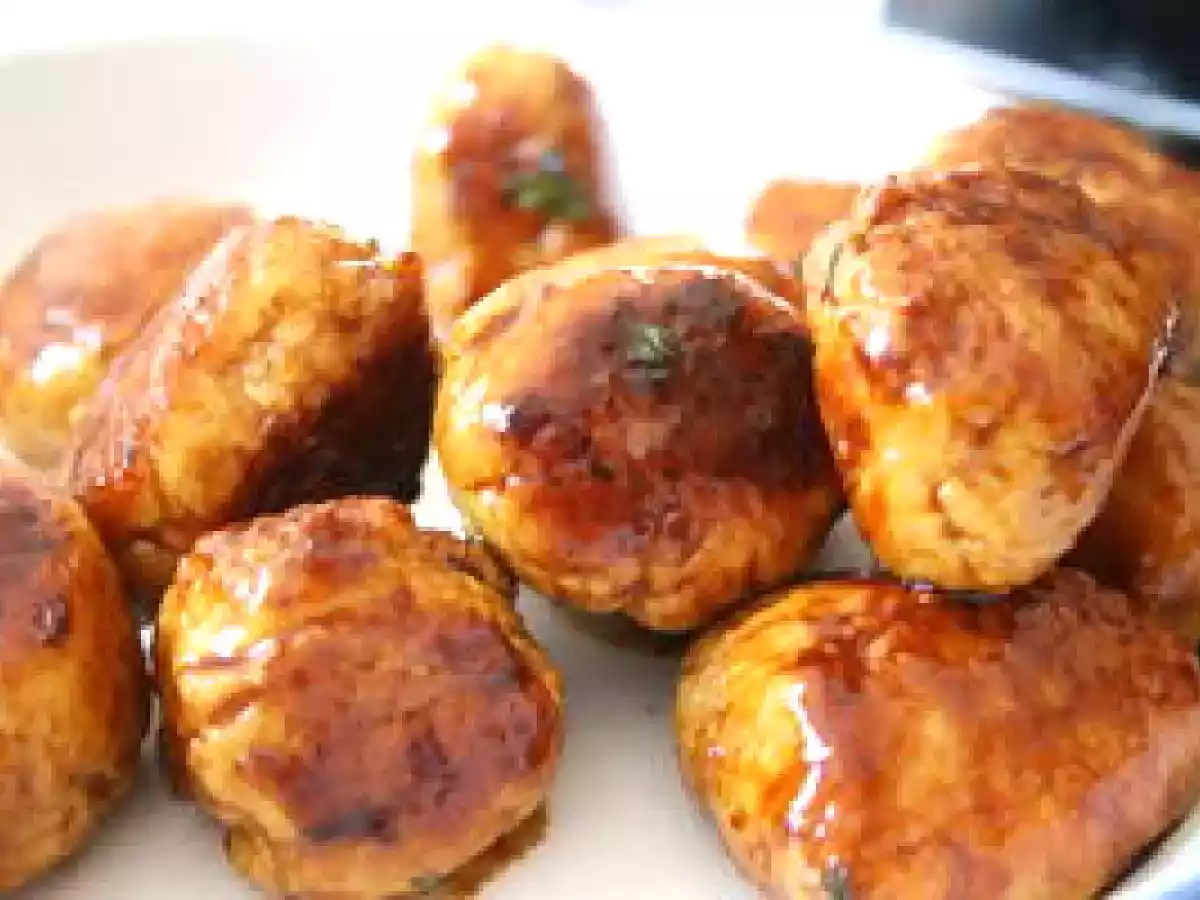 Boulettes de poulet yakitori Apéritiffacile27 min457 Kcal Envoyer cette recette à un ami Imprimer cette page Poser une question à l'auteur Publier votre photo de cette recette Ingrédients 2 2 escalopes de poulet 1 petit oignon 1 oeuf 3 Cuillères à Soupe de sauce soja 1 Cuillère à Soupe de cassonade 1 Cuillère à Soupe de sésame farine (ou maïzena) quelques brins de coriandre sel Coût estimé: 5.4Euros€ (2.7€/part)