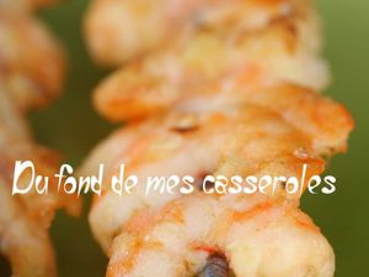 Brochettes de crevette au pastis votez maintenant Apéritiffacile22 min316 Kcal Envoyer cette recette à un ami Imprimer cette page Poser une question à l'auteur Publier votre photo de cette recette Ingrédients 6 24 crevettes crues 2 citrons verts 1 bouchon de d'apéritif anisé 15 cl d'huile d'olive 1 cuillère à café de curcuma Sel poivre