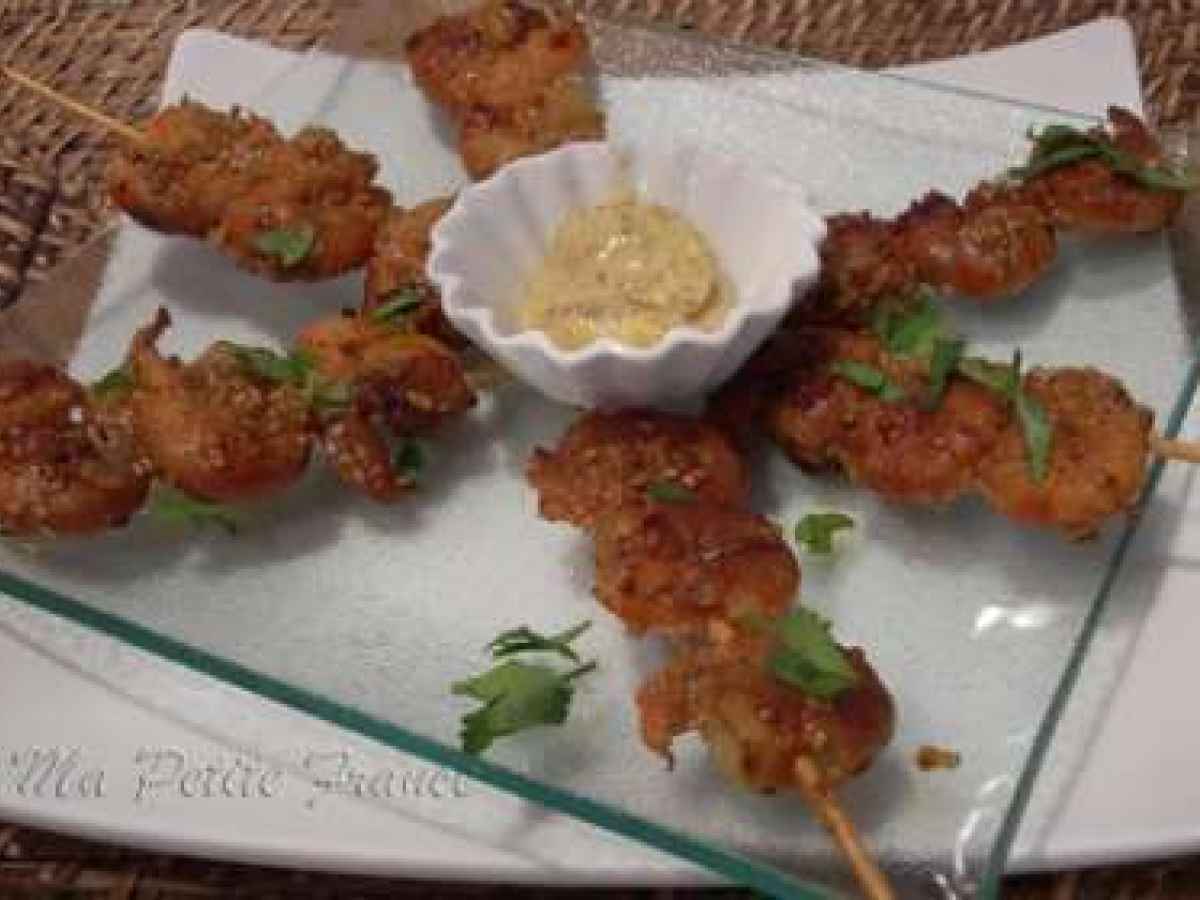 Brochettes de crevettes marinées à la sauce soja