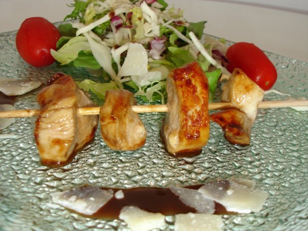 Brochettes de poulet mariné au miel et vinaigre balsamique Apéritiffacile25 min145 Kcal Envoyer cette recette à un ami Imprimer cette page Poser une question à l'auteur Publier votre photo de cette recette Ingrédients 4 400g de blanc de poulet 2 cuillères à soupe de sauce de soja 2 cuillères à soupe de vinaigre balsamique 1 cuillère à soupe de miel Coût estimé: 5.3Euros€ (1.32€/part)